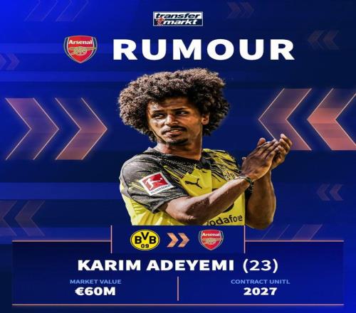 北京时间12月2日,根据德转的报道,阿森纳正考虑在明年夏天引进多特蒙德的锋线球星阿德耶米。