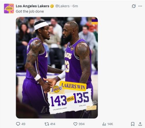 北京时间12月19日,湖人143-135逆转爵士拿到二连胜。这场比赛湖人是末节才逆转取胜,在里夫斯伤停的情况下东契奇、詹姆斯承担了更多的进攻职责,最终老詹拿到28+10,东契奇则是拿到45+三双的数据。此役后湖人本赛季关键时刻10胜0负是联盟唯一关键时刻不败的球队。