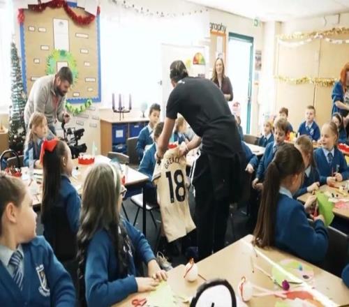 太阳报:格拉利什走进校园,为一位经历坎坷的小球迷送礼物